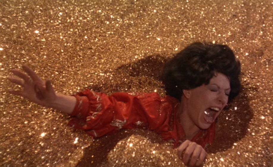La période (début des années 70) s’y prêtait fort bien, alors que le déclin de la Hammer s’engage, que Mario Bava et le cinéma de genre italien (pays coproducteur du film) a livré quelques pièces maîtresses, le fantastique belge a alors une place à prendre. C’est à l’inattendu Jean Brismée, réalisateur de télévision, que revient la tâche de mettre en image cette histoire de succube malveillante et de malédiction familiale. Rien de bien original au demeurant, puisque l’on y suit un groupe de voyageurs contraints de faire halte dans un château perdu au fin fond de la Forêt Noire. Le lieu abrite de bien étranges secrets, dont on dispose d’un aperçu dès le prologue, une séquence en noir et blanc prenant place dans le Berlin de 1944 et au cours de laquelle on assiste à l’assassinat d’un nouveau-né par un notable allemand. Passé cette introduction déjà énigmatique et plutôt stimulante, Au Service du Diable nous propose un menu aux airs de déjà-vu, mais suffisamment bien ficelé pour provoquer l’intérêt… Le déroulé qui voit chaque personnage passer l’arme à gauche au contact de la succube est un rien mécanique, mais une fois encore, un certain charme opère. Car chacune des victimes périe là où elle a fauté, suivant la logique des sept péchés capitaux : luxure, gourmandise, envie… Seven avant l’heure…