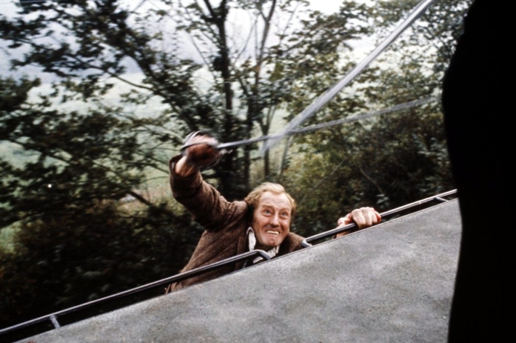 Ainsi, ce Sherlock Holmes attaque l’Orient-Express ambitionne dans une première partie très étirée de dévoiler les turpitudes de son personnage principal, à la fois obsédé par sa nemesis Moriarty autant que par son état de manque, en proie à des visions extrêmement dérangeantes, des hallucinations parfois horrifiques (la créature dans l’armoire). C’est une longue séance d’introspection que Herbert Ross donne à voir, dans un style très télévisuel et assez figé. Le tout porté par un casting de haute volée, dominé par un Robert Duvall/Watson plutôt effacé mais charismatique, Alan Arkin surprenant en Sigmund Freud, Laurence Olivier de passage en Moriarty, Vanessa Redgrave en séduisante rousse kidnappée… et même notre Régine nationale ! Mais c’est évidemment Sherlock qui retient l’attention, prenant vie grâce à la prestation habitée et théâtrale de Nicol Williamson (Excalibur de John Boorman), il livre un Holmes inhabituellement outrancier, à quelques encablures du parodique sans jamais y tomber. Un peu trop guindé pour son propre bien dans une première partie pas inintéressante mais trop bavarde, Sherlock Holmes attaque l’Orient-Express surprend par son dernier acte, aboutissement du film autant que de son intrigue policière, conventionnelle au possible, dans une très longue scène voyant Holmes, Watson et Freud se lancer à la poursuite du bad guy, dans une course effrénée entre deux trains lancés à grande vitesse (venant légitimer le titre français !). Une scène dynamique, haletante et brillamment réalisée, que rien de ce qui a précédé ne pouvait laisser entrevoir. Un final en apothéose venant clore cette aventure et ponctuer habilement le volet psychanalytique (pas toujours très subtil et nuancé) d’une intrigue qui prend plaisir à opposer les deux approches et points de vue différents de Holmes et Freud. Sous ses dehors de drame policier mâtiné d’action, Sherlock Holmes attaque l’Orient-Express se révèle au final un film surprenant, à l’atmosphère et au ton très particuliers (l’étrange scène de la partie de tennis en milieu de métrage), marquant dans sa capacité à demeurer inclassable d’un bout à l’autre. Ce qui n’est pas une mince qualité.