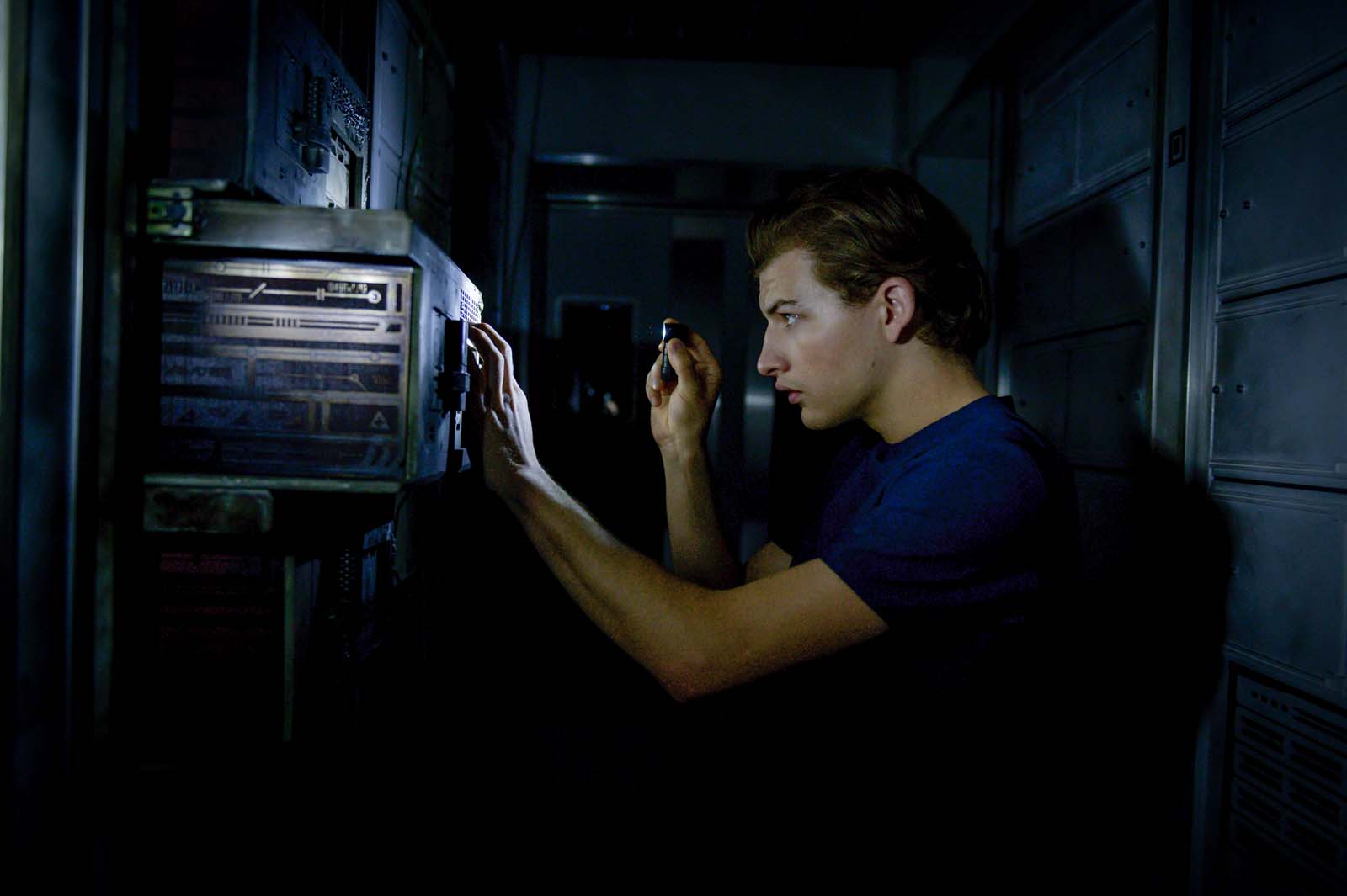 Aux manettes de ce thriller orienté Young Adult, Neil Burger qui a également imaginé et rédigé le scénario. Après un Illusionniste sortit malgré lui face au Prestige de Christopher Nolan, sur un thème similaire, le réalisateur américain n’a pas réellement convaincu avec son thriller Limitless, puis le premier opus de Divergente, mettant déjà en scène une aventure futuriste et fantastique avec de jeunes adultes. Dans Voyagers, Burger souhaite scruter la nature humaine, la notion de groupe dans un espace confiné et les interactions d’individus, qui plus est dans la fleur de l’âge et en proie à toutes les pulsions et tentations possibles. La perte d’un personnage principal constitue l’étincelle vers laquelle tout va se dérégler. C’est cette lente déliquescence des rapports humains que filme Neil Burger, au sein d’un décor aseptisé et clinique au possible. L’ennui, c’est que le cinéaste s’appuie visiblement volontairement sur des archétypes de personnages et de caractères, sur des rebondissements et ressorts qui, eux aussi, n’ont rien de bien novateurs pour permettre à sa démonstration de se développer. On peut comprendre cette approche puisque ce sont précisément ces archétypes que le cinéaste souhaite ausculter. Mais dès lors, c’est sans grande originalité que l’action se déploie, emmenée par Tye Sheridan et Lily-Rose Depp, jeune couple qui se découvre et tente de colmater les brèches qui s’ouvrent un peu partout dans les rapports sociaux, entraînant des conflits de plus en plus graves et violents. Malgré quelques belles idées de mise en scène (le couloir qui n’en finit pas dans lequel les protagonistes courent à grandes foulées) et une facture technique très soignée, Voyagers s’essouffle malheureusement très rapidement et se révèle même extrêmement prévisible, prisonnier qu’il est des contraintes de frilosité de production ne permettant pas de traiter correctement les débordements à l’écran, dans la démesure qu’un tel sujet réclamerait. La machine tourne alors à vide et peine à maintenir l’intérêt jusqu’à son dénouement. C’est dommage car Fionn Whitehead, déjà vu dans Dunkerque de Christopher Nolan, malgré ici un rôle caricatural, laisse entrevoir un réel potentiel.