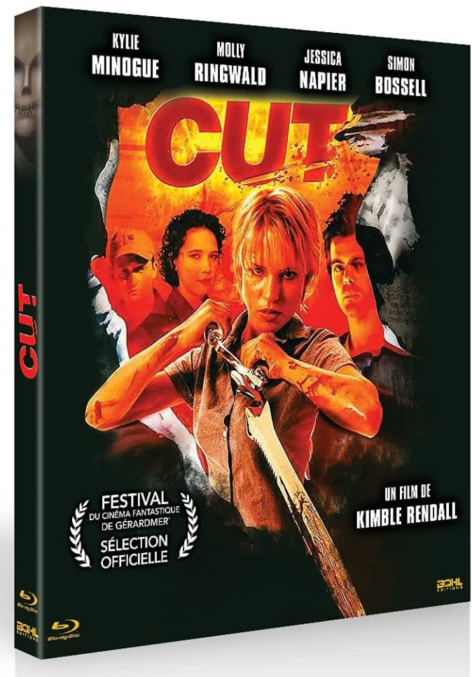 Avec son postulat de film dans le film, Cut plonge dans l’envers du décor, sans aller bien loin non plus, ni entrer dans le détail, avec une approche naïve pas bien méchante, mais qui ne propose rien de bien riche à se mettre sous la dent. D’ailleurs, l’argument méta du film est peut-être ce qui peut le plus irriter, car condensé en une trop grande abondance de clins d’œil et de citations de titres du genre sans jamais rien en faire. A la longue, ça en devient globalement agaçant, là où le pilier Scream, même dans ses séquelles les moins abouties, s’appuyait sur un véritable discours en miroir sur les règles et la nature même du slasher. Incomparable. Ici, le film dans le film n’est qu’un décor, une simple toile de fond jamais interrogée. Alors que retient-on aujourd’hui de Cut ? Et bien pas grand chose… Un petit film sympathique, fait avec passion, incontestablement, mais sans aucune personnalité. Dans le même style, on a vu mieux ailleurs, ici, Kimble Rendall se contente d’aligner les clichés, de manière efficace, certes, de convoquer Molly Ringwald (The Breakfast Club) et la chanteuse Kylie Minogue pour une courte apparition et met en scène un tueur masqué à l’allure plutôt convaincante, mais perd en route la substance qui aurait pu faire de Cut autre chose qu’un fan-film plus abouti que la moyenne… D’ailleurs, suite au succès modeste de ce premier long-métrage, Kimble Rendall, qui n’avait jusqu’alors pas fait grand chose, n’en a pas profité pour faire fructifier sa carrière de cinéaste, à part quelques bisseries oubliables (Bait en 2012 et 7 Guardians of the Tomb en 2018). Mais le bougre affiche quelques lignes importantes à son CV en tant qu’assistant réalisateur chez les Wachowski ou encore Alex Proyas. Quand même…