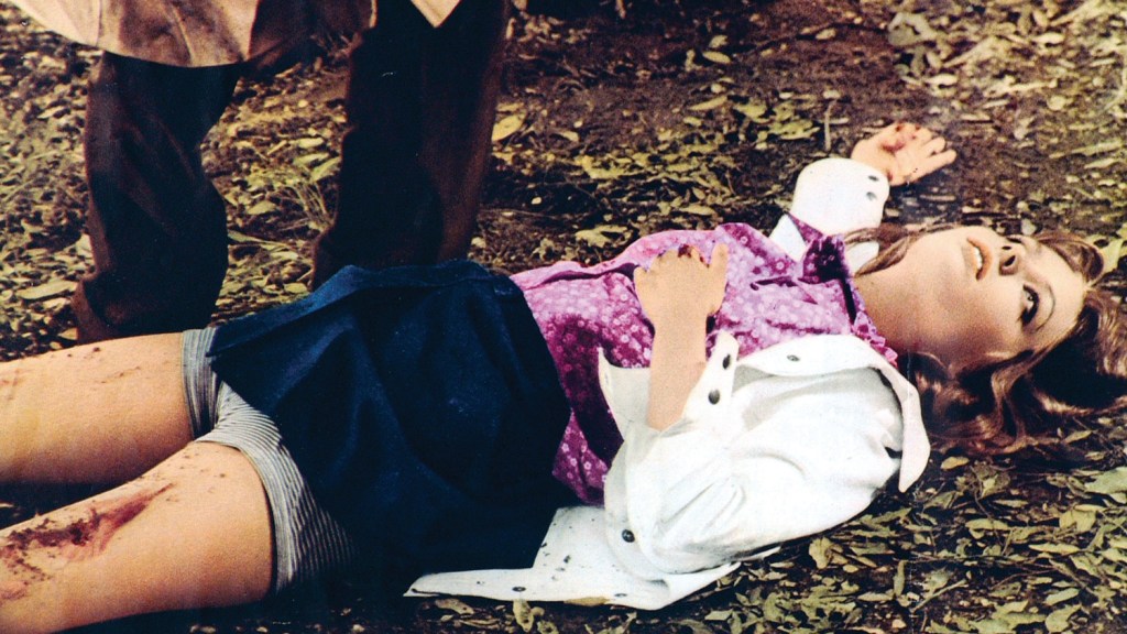 Drôle d’objet que ce Papillon aux ailes ensanglantées qui affiche une excellente tenue dans sa mise en scène, inspirée du cinéma américain, tout en conservant son identité et constamment inventive. On peut ainsi citer ces compositions d’images pointues et riches de sens (la double focale est ici convoquée), mais aussi ce mouvement de caméra circulaire jusqu’au vertige lors du final. Spécialiste du cinéma populaire italien, Duccio Tessari a notamment réalisé de nombreux westerns, notamment sa série des Ringo, mais également le Zorro avec Alain Delon en 1975. Le scénario n’est pas en reste et s’avère plus malin qu’il y paraît. Coécrit par Tessari et Gianfranco Clerici, ce-dernier ayant mis la main à La Longue Nuit de l’exorcisme et L’Éventreur de New York de Lucio Fulci, L’Antéchrist d’Alberto De Martino ou encore Cannibal Holocaust de Rudgero Deodato, il se permet certaines audaces maîtrisées et fait beaucoup pour la particularité et la saveur du film. Il jongle adroitement avec la temporalité, entremêlant brillamment récits passé et présent au sein d’une même scène, tout en gérant avec un bel équilibre le basculement de points de vue à répétition. Au-delà de son aspect policier très documenté et du whodunit en vigueur, ce qui semble intéresser en premier lieu le cinéaste, c’est l’étude de mœurs, l’image qu’il dépeint de la société bourgeoise italienne. A cet égard, le film prend un malin plaisir à brosser des rôles masculins assez peu reluisants : dominateurs, menteurs, égoïstes, l’apothéose étant incarnée par le personnage détestable de l’avocat, quand les femmes sont pour leur part condamnées à évoluer dans l’ombre, à subir les événements. Giallo atypique, et pourtant film policier de premier ordre, Un Papillon aux ailes ensanglantées s’avère un film de genre de premier choix, qui ne sacrifie jamais son ambition sur l’autel du spectaculaire.