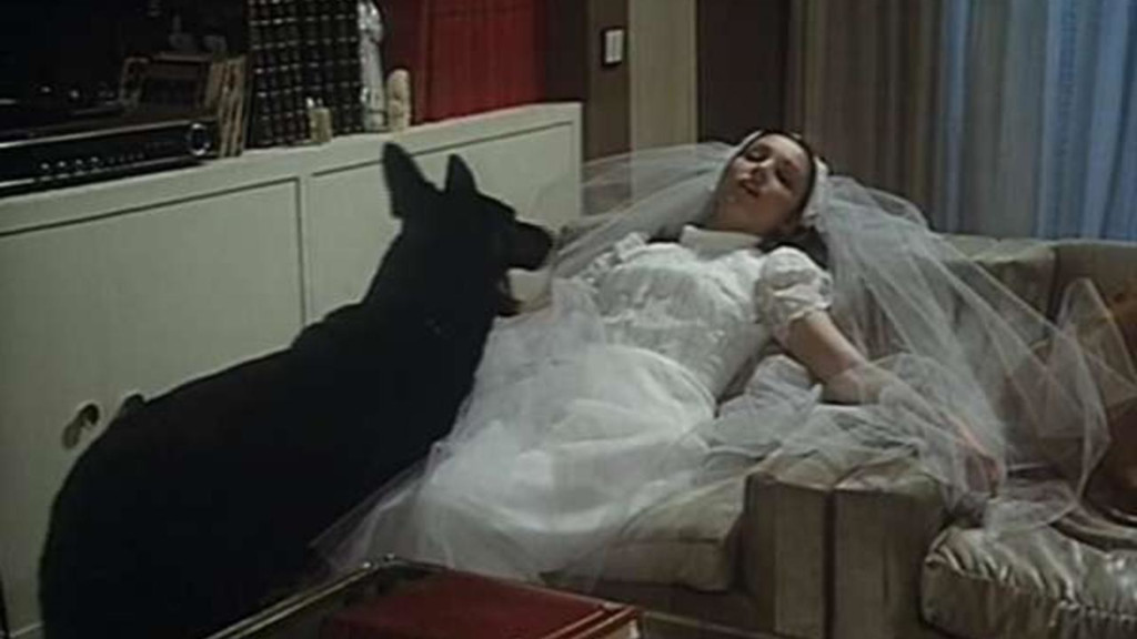 Etonnamment, le film va au-delà de son pitch farfelu et aux airs déviants pour offrir un résultat d’une grande profondeur. Car, si on peut au début penser que le film aborde les traumatismes et le dérangement chez le personnage principal, le film offre plutôt une réflexion sur l’émancipation, car la protagoniste ne ressent plus rien envers son mari et pense que son enfant ne peux que servir à sauver son couple (tout en étant absolument pas convaincu par cela). De La Iglesia aborde le fait que Cristina s’évade du patriarcat, là où tout les hommes du film sont soit des croyants aveugles, soit des personnages invisibles dans le scénario, elle se libère de l’emprise de son mari. Le fond est donc vraiment bon mais la forme l’est tout autant avec une mise en scène vraiment captant les émotions des personnages, les décors et gérant bien le tempo comique. Car, oui, Eloy De La Iglesia est un réalisateur de comédies noires et il le prouve encore une fois ici, avec des gros plans sur le chien mais surtout avec des scènes burlesques (la façon dont Cristina traite le chien comme un enfant) ou des aspects suggestifs (des traces de pattes de chien sur une robe de mariée). Et, même si son humour est insistant, il reste bien dosé pour ne jamais tomber dans le ridicule ou la redondance. Il se révèle surtout assez noir pour ne pas transformer le déviant en quelque chose de totalement anodin, dans un entre-deux remarquable. Et, au-delà de ce mélange des genres, le métrage compte sur un casting vraiment crédible composé d’Ana Belén, stupéfiante, de Juan Diego, assez flippant par instants mais surtout toujours juste, de Claudia Gravy, très bon rôle secondaire notamment dans sa dernière scène dans le film et Micky III, dans le rôle du chien Bruno, admirablement bien dirigé. Donc oui, étonnamment, La Créature ira au-delà de ce que l’on pouvait attendre et épate dans son propos. Ce film est vraiment à découvrir mais, pour le moment du moins, est indisponible en France.