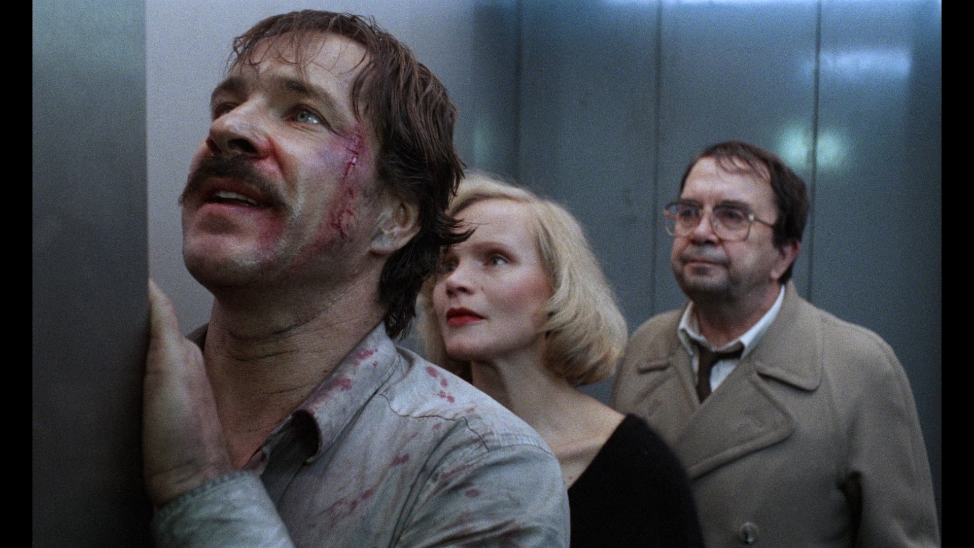 En termes de mise en scène, le concept du film implique en lui-même un sacré défi : rendre intéressante et dynamique une histoire se déroulant quasi exclusivement dans une étroite cabine d’ascenseur. Quelques années plus tard, le très mauvais Devil de John Erick Dowdle, pourtant coscénarisé par M. Night Shyamalan, s’y cassera les dents bien comme il faut. Avec Out of Order, Carl Schenkel fait bien mieux. Sans esbroufe ni effets, sans aller jusqu’à marquer les esprits, ses choix de mise en scène s’avèrent payants, le cinéaste suisse parvient à insuffler une dynamique et une tension qui ne faiblissent jamais, se permettant même quelques mouvements d’appareils plutôt bien sentis. De son côté, le directeur photo Jacques Steyn déploie des trésors d’imagination pour éclairer les protagonistes de manière signifiante. Car toute la réalisation et la cinématographie d’Out of Order est au service d’un discours anticonformiste et anarchiste en forme de gros doigt d’honneur à la société composée de gros beaufs capitalistes de l’époque. Au casting, on notera la présence de Renée Soutendijk, dont le rôle de séductrice n’est pas sans évoquer ses prestations dans Spetters et Le Quatrième Homme de Paul Verhoeven. À ses côtés, Götz George évoquera inévitablement la série Tatort, mais ce serait oublier qu’il a été récompensé du Prix d’interprétation masculine à la Mostra de Venise en 1995 pour L’Homme de la mort. Entre les deux, Hannes Jaenicke trouve sûrement l’un de ses meilleurs rôles, lui qui a surtout œuvré pour la télévision. Micro-budget, micro-équipe et discours maxi-contestataire, pour un résultat très abouti. Out of Order, sans être un chef-d’œuvre inattaquable, reste à ce jour l’un des meilleurs thrillers en huis clos qui soient. Le plus intéressant de son auteur. Un film à réhabiliter.