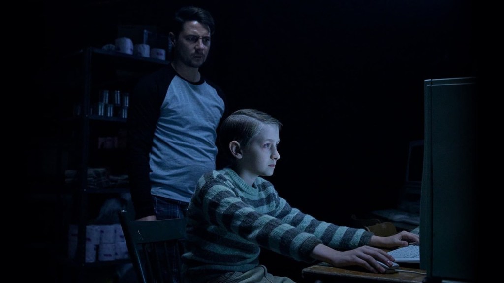 Côté frissons, parce que c’est aussi pour cela qu’on l’attend, Follow_Dead frémit de temps à autres, avec une apparition, un jump-scare, une ambiance angoissante qui commence à se mettre en place. Mais tout est trop insuffisant pour provoquer le bel effroi sensé nous coller au siège, pas aidé par des effets numériques un peu ratés sur les bords qui trahissent un budget anémique. On ne pourra pas reprocher au réalisateur John McPhail de tenter certaines choses et de produire quelques idées et images marquantes (l’enfant devant son PC dans une pièce obscure, ses apparitions nocturnes sur un rocking-chair, l’idée plutôt bien vue et exécutée de l’appartement déformé lorsque le mal s’insinue), mais on ne peut qu’être dépité par un manque aussi flagrant d’audace dans le récit, et ce ne sont pas les postures de dénonciation que le film met en avant qui sauvent les apparences. On notera cependant la prestation du comédien principal, Augustus Prew (Le Seigneur des anneaux : Les Anneaux de pouvoir), qui se débat comme il peut avec un personnage de geek/influenceur/gay, globalement assez mal dans sa peau, qui cherche un sens à son existence (ronpchit!), et qui trouve donc le moyen d’être persécuté par le fantôme d’un gamin au crane défoncé. Si on garde bien les yeux ouverts, on retrouvera un Justin Long (Jeepers Creepers, Barbare), qui ne sait pas bien ce qu’il fait là, et qui cachetonne faute de mieux…