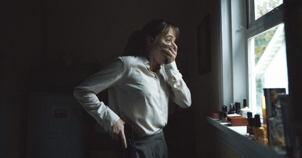 Le personnage du tueur, interprété (et ce n’est pas un spoil) par un Nicolas Cage qui parvient encore à surprendre sous des couches de maquillage, fait éclore devant nos yeux ébahis un monstre de la pire espèce absolument effrayant, qui représente à lui seul les angoisses d’une société américaine déliquescente. De la même manière, le mutisme de la fliquette brillamment campée par Maika Monroe apporte un contre-point efficace et assumé. Son rapport au tueur et le lien qui se déploie entre eux n’a, une fois encore, rien de très original, mais Perkins réussit cependant à en faire un élément suffisamment tordu et déviant pour en faire un élément moteur de son récit.