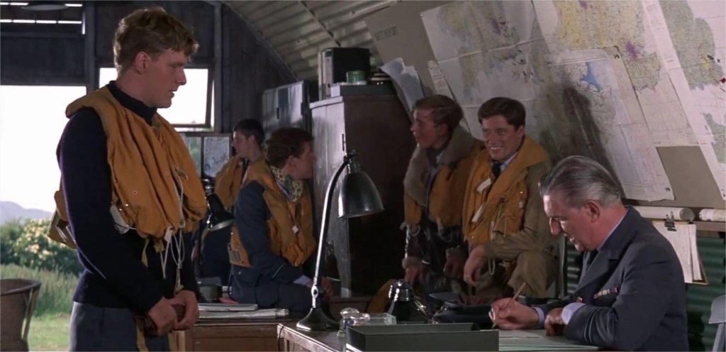 Le film revisite un épisode précis de la Seconde Guerre mondiale, la préparation et l’attaque par les airs de l’Angleterre par l’armée allemande en 1940. Forte de son élan de conquête en France, l’armée nazie compte bien déferler sur le Royaume Uni. C’est ce qu’illustre très bien le scénario écrit à quatre mains par Wilfred Greatorex et James Kennaway, d’après le livre de Derek Dempster et Derek Wood. L’enthousiasme affiché par les forces militaires allemandes contraste fortement avec le pessimisme et la grisaille côté britannique. Le film s’assure d’amplifier cette rivalité a priori déséquilibrée, en suivant les mésaventures des pilotes anglais, pas assez préparés et rapidement dépassés, pas aidés par des autorités qui évaluent mal la portée de la menace de l’ennemi. La Bataille d’Angleterre est avant tout le récit, certes romancé sur de nombreux points, d’une alliance miraculeuse, d’une entraide internationale avec d’autres nations, d’autres pilotes, confirmés ou non, venant prêter main forte pour enrayer la progression de l’armée nazie. Ce sont tous ces essais, l’apprentissage accéléré de certains novices, que dévoile et illustre assez brillamment le film, jusqu’à la fameuse bataille finale. Et qui dit superproduction, dit casting quatre étoiles. Michael Caine, Sir Laurence Olivier, Robert Shaw, Ian McShane ou encore Christopher Plummer se partagent l’affiche prestigieuse de ce film de guerre.