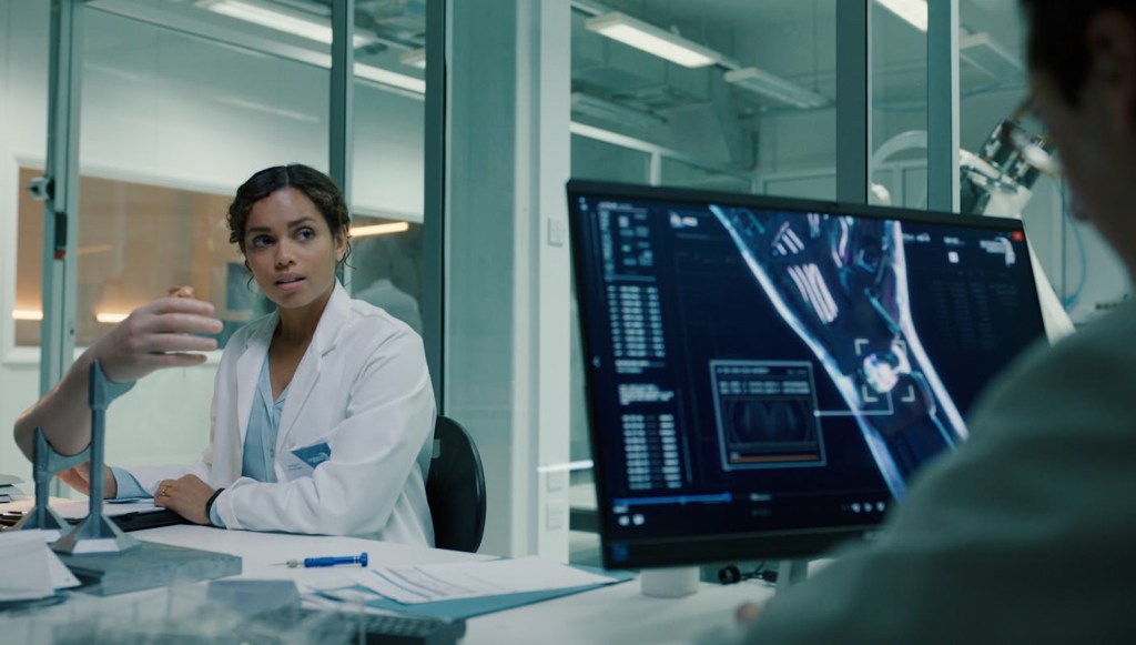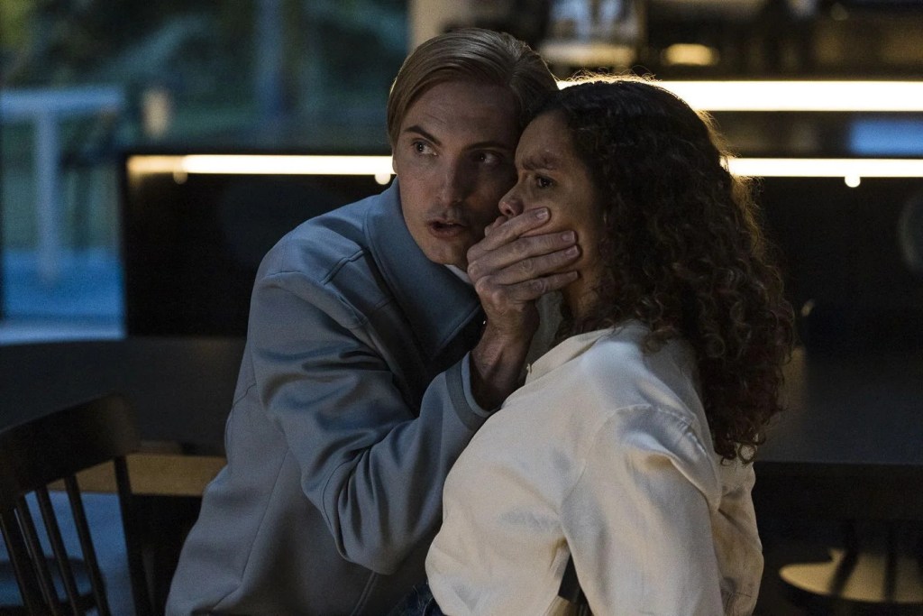 En matière d’IA malveillante, on connaît le refrain, et T.I.M. ne brille certainement pas par son originalité. C’est même sa principale limite. On a vu mille fois ce genre de récit, et le film de Spencer Brown n’apporte aucune réelle nouveauté. Pas de surprise à se mettre sous la dent, l’ensemble des péripéties de la rébellion humanoïde se voient venir à des kilomètres. Mais pire, le spectateur a continuellement un quart d’heure d’avance sur les personnages, et ça, c’est quand même fâcheux. Si Paul (Mark Rowley) a tout de suite de vrais soupçons sur les motivations de l’androïde, sa compagne Abi est perpétuellement à la traîne sur les évolutions du scénario et les motivations de son domestique synthétique. Un problème d’autant plus regrettable que la jeune femme est au centre des « désirs » de T.I.M. qui commence à lui vouer un amour sans borne, quitte à éradiquer quiconque se mettra sur son passage. Un enjeu globalement limité et assez casse-gueule que le réalisateur ne parvient pas à transcender. Les fausses pistes scénaristiques (la tromperie du mari) ne sont pas suffisamment convaincantes pour déboucher sur un véritable suspense.