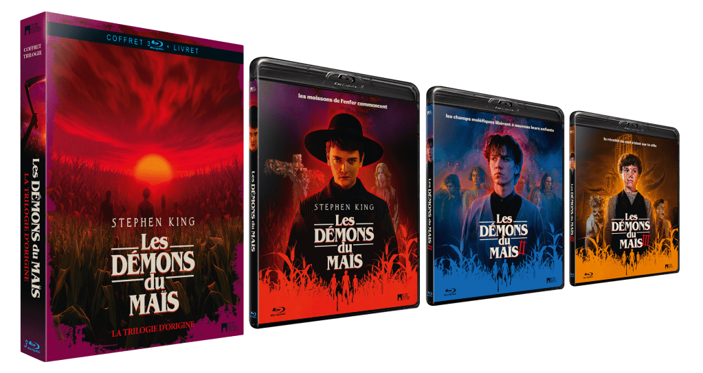 Une fois de plus, on ne peut que saluer le travail de la team Rimini Editions qui a eu l’excellente idée de nous proposer la trilogie originale en version haute définition. Trois classiques à (re)découvrir que vous soyez fans ou curieux. Mais je ne peux que vous déconseiller les suites plus désastreuses les unes que les autres… Côté disque, les trois films ont été tournés en pellicule 35 mm et sont proposés au format respecté 1.85:1 pour le premier opus, mais au format non respecté 1.78:1 (au lieu de 1.85:1) pour les deux suivants. Une belle prouesse sachant que la restauration a été faite à partir des négatifs originaux. Le grain argentique est présent de manière modérée même si cela se ressent lors de certaines scènes où la restauration a dû être plus difficile. Rien à redire côté colorimétrie avec un respect des couleurs qui ressortent de manière précise dans les champs de maïs. Les scènes de nuit restent de bonne facture également, même si certaines sont plus ternes ce qui est justifiable vu le maigre budget des films. Sur le plan audio, l’éditeur propose une piste VO en DTS-HD Master Audio 5.1 pour l’opus original et un DTS-HD Master Audio 2.0 en VO comme en VF pour la trilogie. Des pistes très correctes dans l’ensemble même si j’ai un petit penchant pour la VO que j’ai trouvée un poil plus nette. Le coffret inclus comme toujours un livret comprenant 52 pages revenant sur la nouvelle de Stephen King et l’ensemble de la saga.