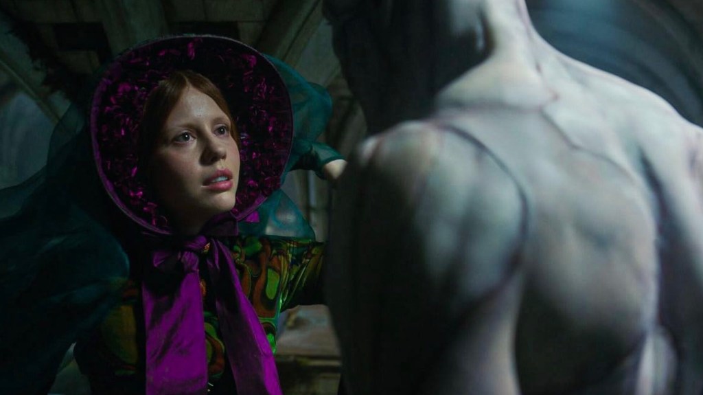 La créature en elle-même, dont l’aspect général a beaucoup fait parler, demeure une vraie réussite. Laissant de côté l’aspect cadavre viandard en putréfaction, del Toro choisit de revisiter les monstres couturés dégueulasses habituels pour iconiser son monstre en s’orientant plutôt du côté de la pureté des divinités et représentations de statues grecques. La physionomie de son interprète Jacob Elordi, très grand et élancé, assure une incarnation physique parfaite, et les jeux de regards, passant de la sensibilité et l’ingénuité la plus totale à l’agressivité et la crainte, sont remarquablement retranscrits. La créature reste certainement l’évolution la plus flagrante de la touche del Toro. Le reste du casting sait se montrer à la hauteur, Oscar Isaac, dans un rôle fiévreux, Mia Goth, dans un personnage à la fois ingénu mais aussi affirmé, qui souffre principalement des raccourcis scénaristiques, Christoph Walz qui cabotine un peu moins qu’à l’accoutumée.